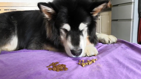 阿拉斯加雪橇犬团团平时就是个“贪吃娃”,,,,,可是每次都会将自己以为最好吃的先吃完,,,,,再把其他的吃完,,,,,两款狗粮在一起,,,,,依旧是这个习惯。。。。。。。