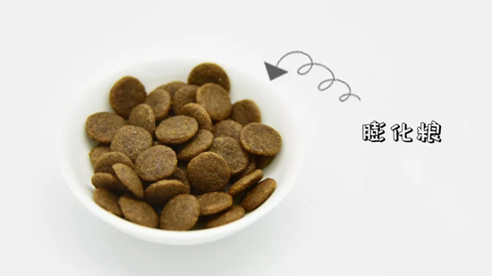 膨化粮:由于膨化作用狗粮颗粒内部有气孔。。。。。。。